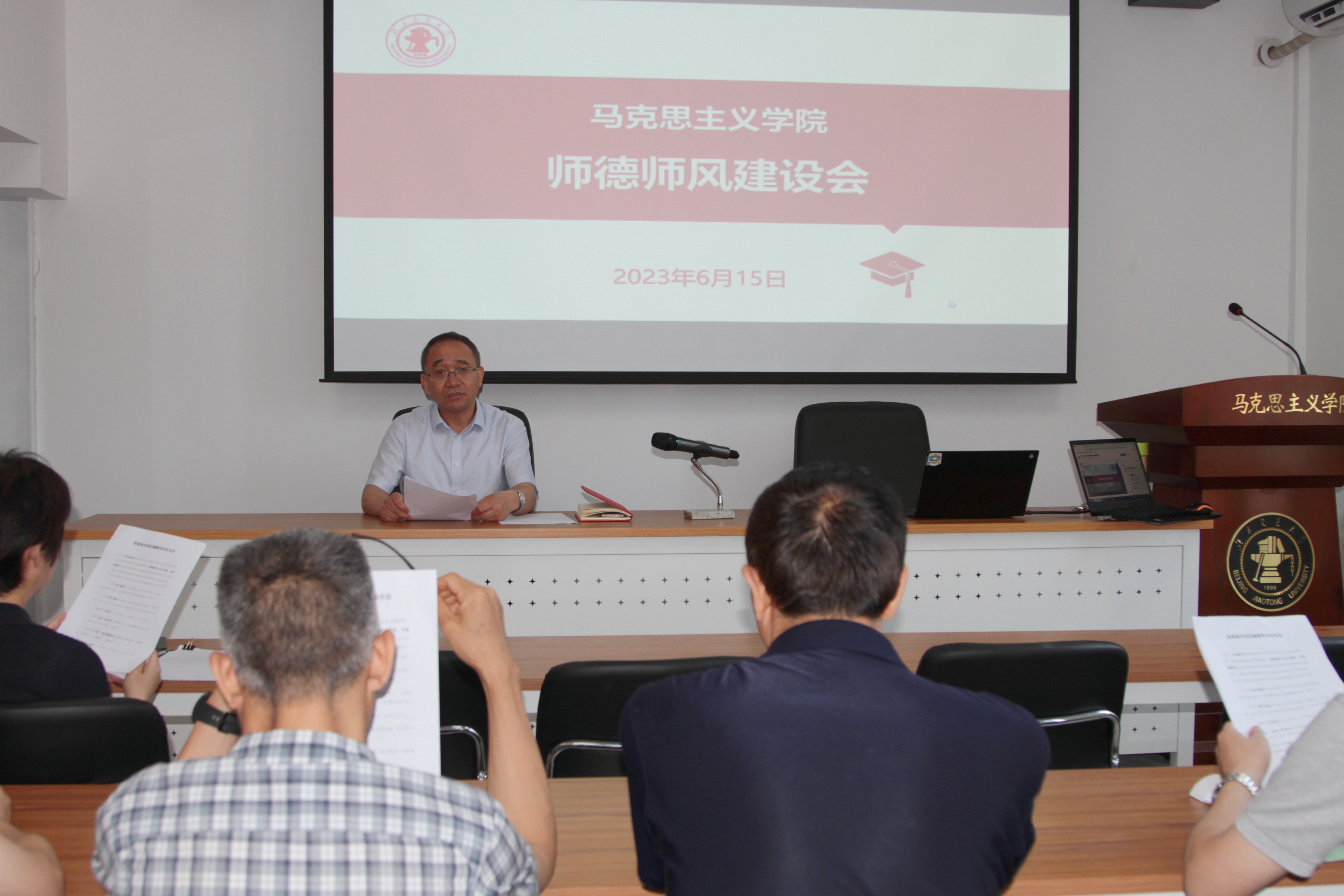 2023年6月16日上午9:00AC米兰中文官方网站在向阳办公室2111召开师德师风建设会,学院全体教职工出席此次会议,会议由学院党委书记孙冬梅主持。